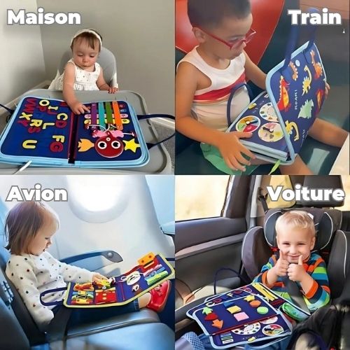 Grâce à ses activités ludiques et tactiles, il occupe les petites mains et stimule l’esprit, transformant les moments d’attente ou de stress en instants de jeu calmes et concentrés.